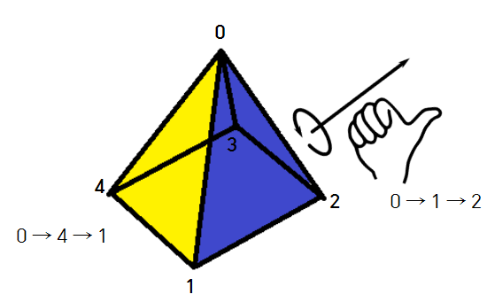 그래서 아래와 같이 vertex 번호가 주어진다면 오른손 법칙에 따라 normal vector가 바깥쪽을 향하게