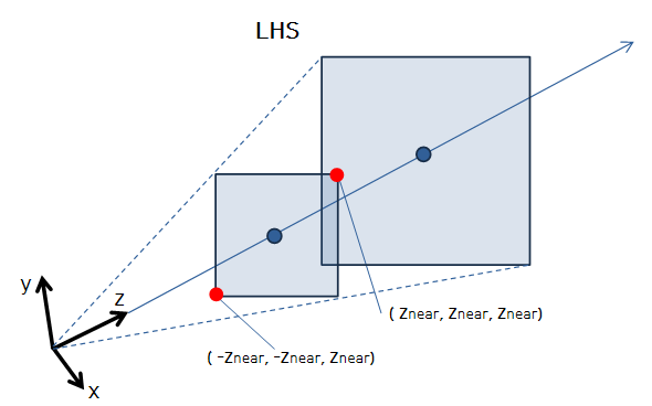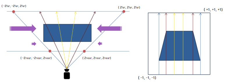 Znear 평면 기준으로 정사각형이 되는 대칭 피라미드로 mapping한다.