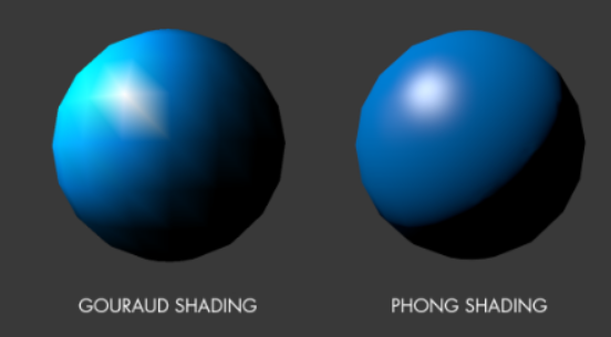 phong shading은 한층 부드럽게 빛 처리를 하는 걸 볼 수 있다.
