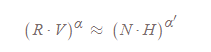N · H 에서 α'(알파 프라임)으로, shininess 값을 훨씬 높혀준다.