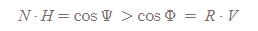 그래서 N · H 는 R · V보다 항상 값이 커질 수 밖에 없다.