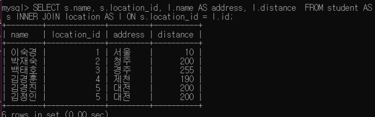 그래서 s.name , s.location_id , l.name , l.distance 값을 가져오지만