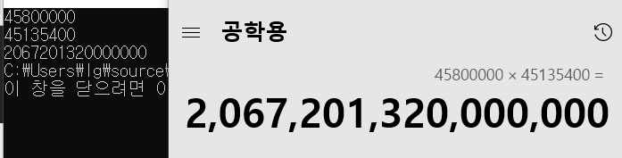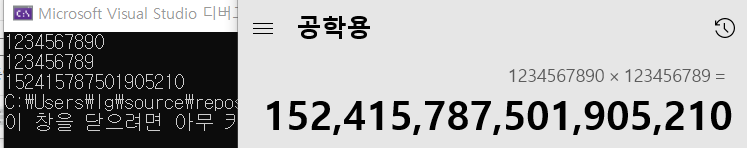 계산기로는 나오지 않을 숫자도 잘 나오는 걸 볼 수 있다.
