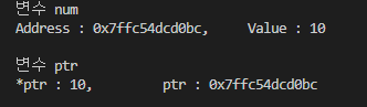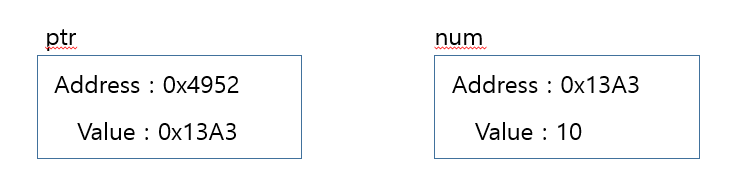 ptr 포인터형 변수는 num이라는 변수의 address(주소값)을 저장한다.